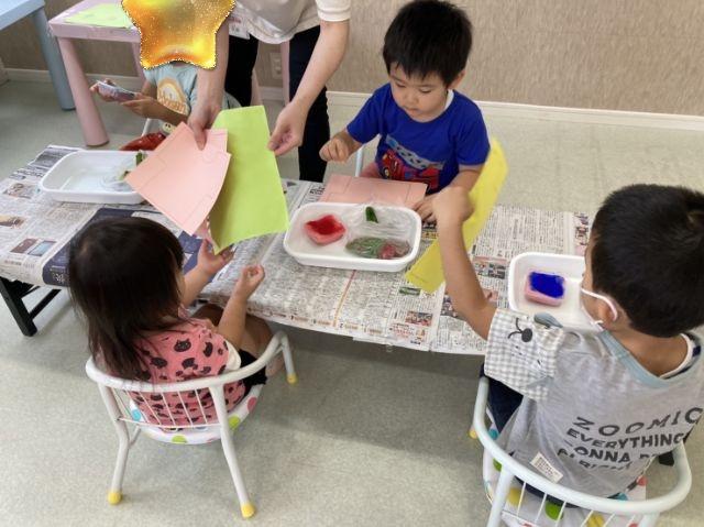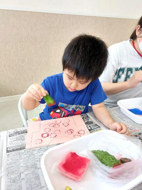 本日は『個別プログラム』を変更して『野菜スタンプ』を行いました。