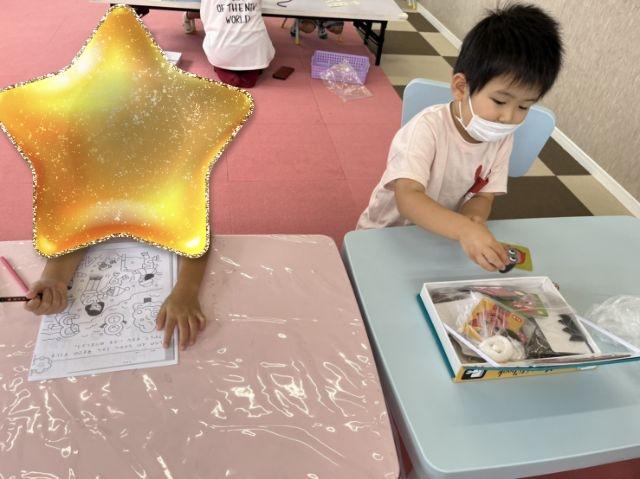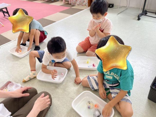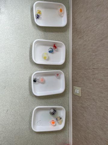 自分のトレイに『氷』を入れました。はじまりの会では氷でしたがおわりの会では水になって中から色々なキャラクターが出てきたね(^^)