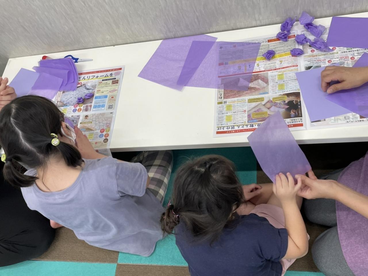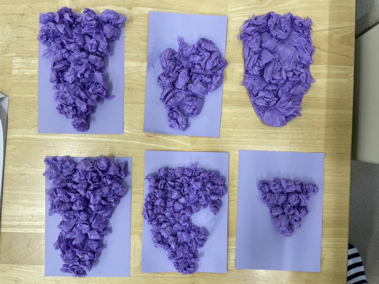 みんなで花紙を丸めブドウを作りました☆