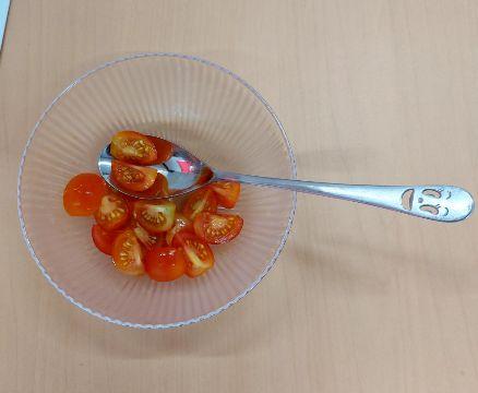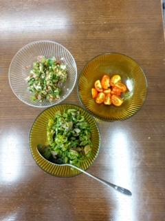 食事の時には、収穫したトマトやオクラを皆んなで食べました。美味しかったね☆