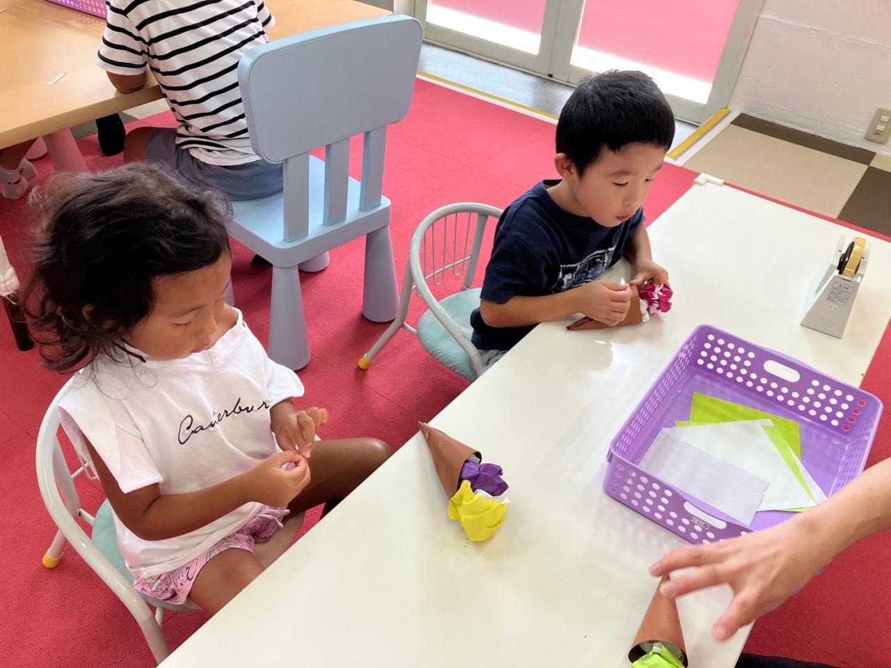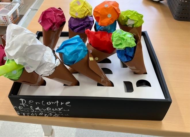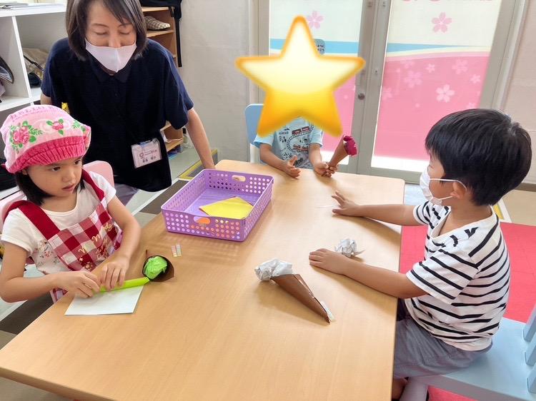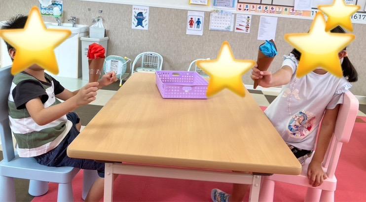 と思いおもいの折り紙を選んでコーンに乗せました(๑>◡<๑)