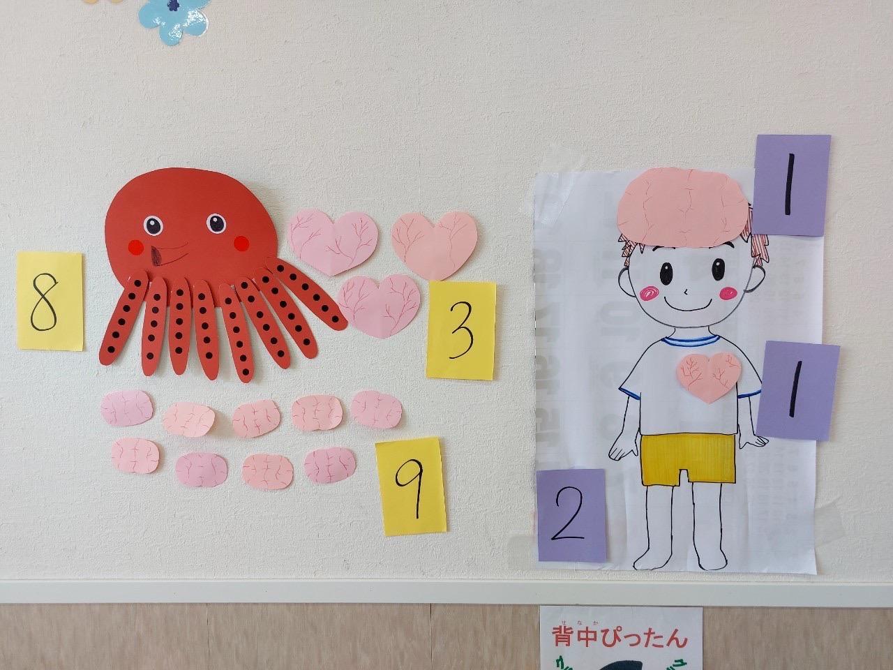 今日は、タコの足や心臓、脳みその数をみんなと比べてみました☆