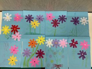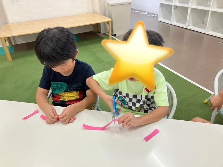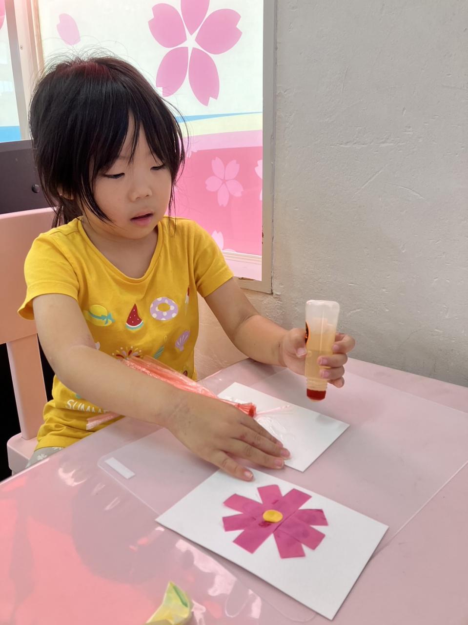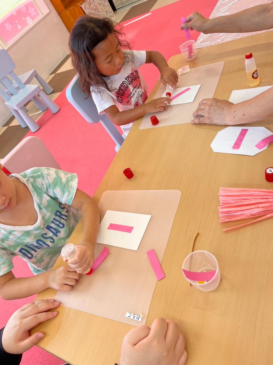 コスモスをイメージしての糊付けでは、のりの量や線に合わせて花びらを貼るように取り組みました(*´꒳`*)
