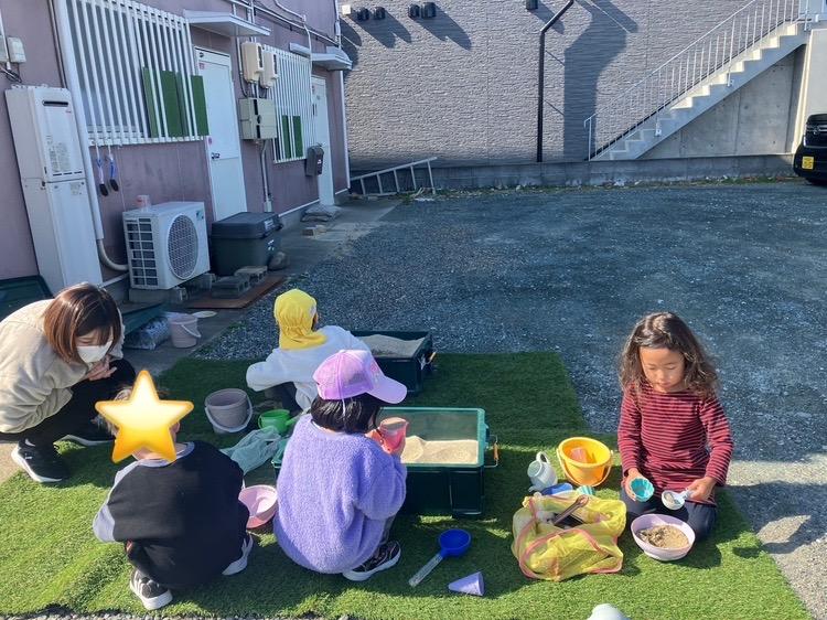 外では、みんなで砂遊びや縄跳びをして遊んで楽しかったね☆