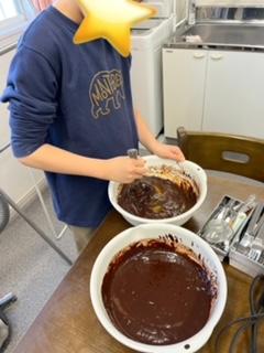卵を溶いたり、砂糖を測ったり、チョコを混ぜたり…みんな真剣に作りました!