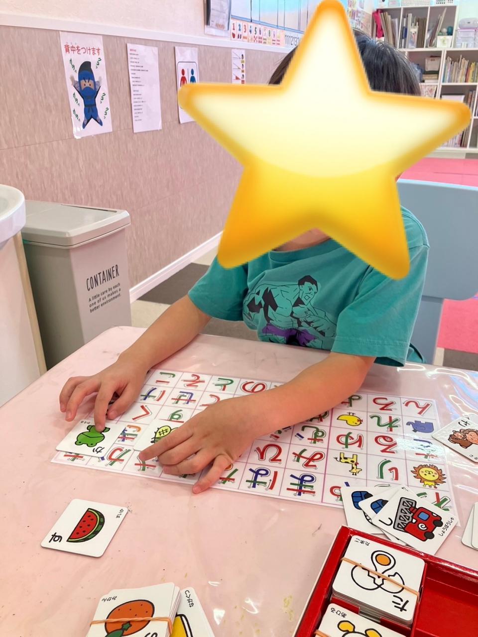 2つ目のグループはひらがなのカードを使って名前を探したり「あ」から始まるものは?という質問に答えました!
