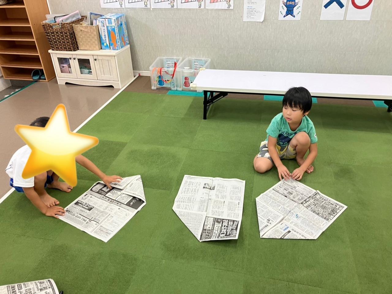 年中さんは新聞紙を折って、紙鉄砲を作りました!しっかり手のアイロンをかけながら折ることができました(^^)