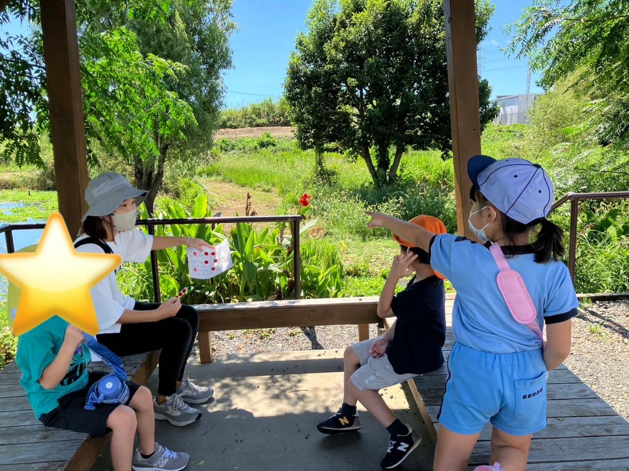 個別プログラムを頑張ったあとは、周辺を散歩しました。お散歩ビンゴをしながら楽しく歩きました!