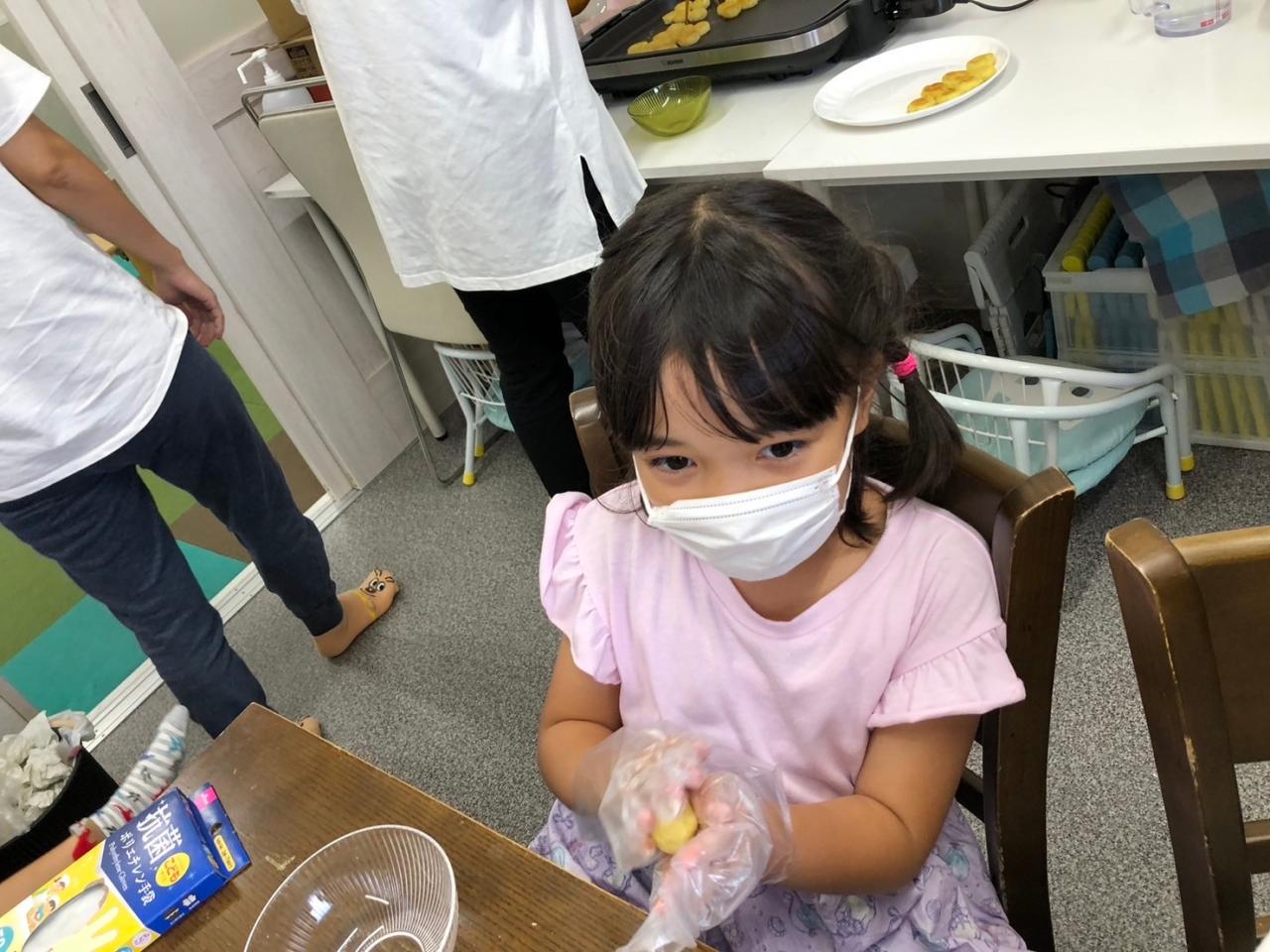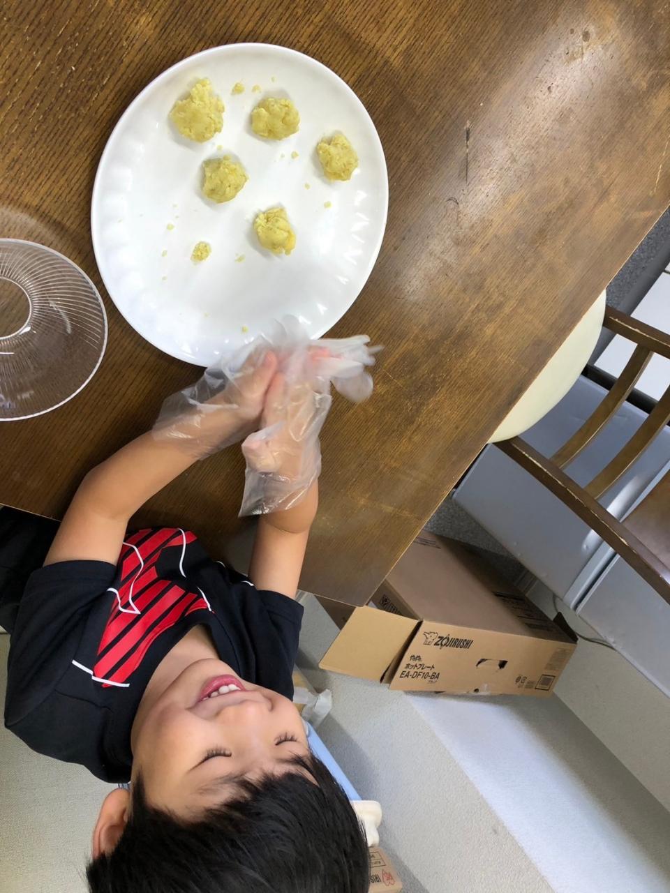 午後は学習後、お月見のおだんご作りをしました!白玉団子とおいものだんごを丸める作業をしました。