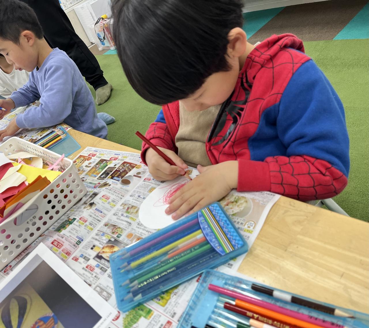 制作では、一人ひとり好きなように風船を作りました!色を塗る子、色紙を貼る子など個性的な風船ができました(^^)