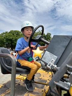 アスファルトフィニッシャーや白バイに乗ることができたね!