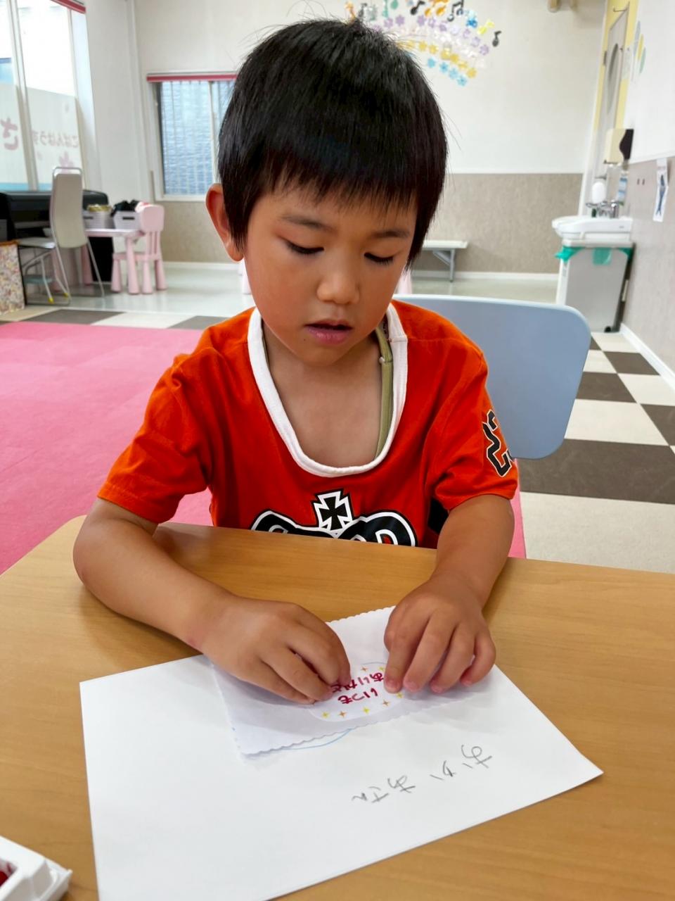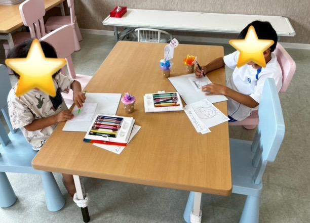 昨日、メッセージスタンドまで作った子は今日はカードに大好きな家族の絵を描いたり、自分の好きなキャラクターの絵を描きました☆