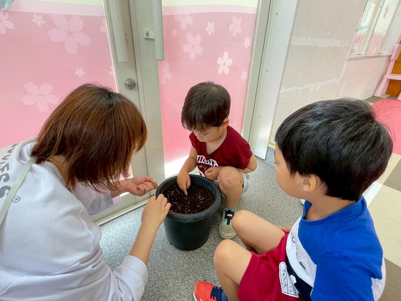 その後は、ひまわりの種を植えたりプラレールで遊んで過ごしました