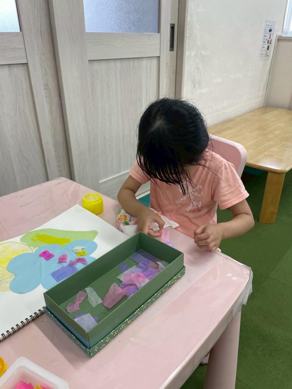 プレゼント作りが終わっていた子は、手先を使った個別プログラムに取り組みました。
