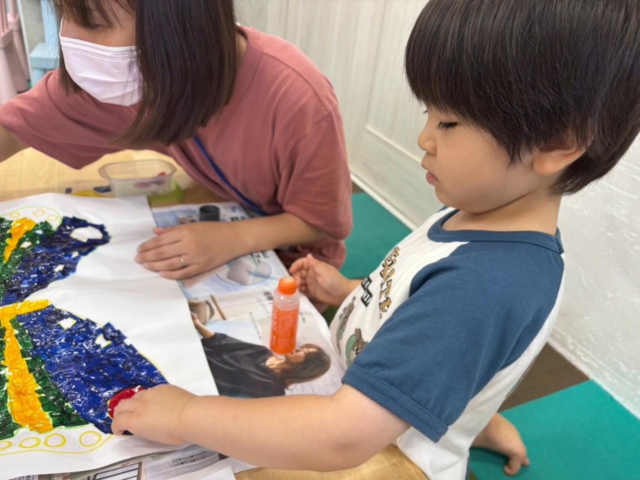 はらぺこあおむしの作品作りも完成が近づいてきました!