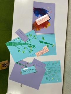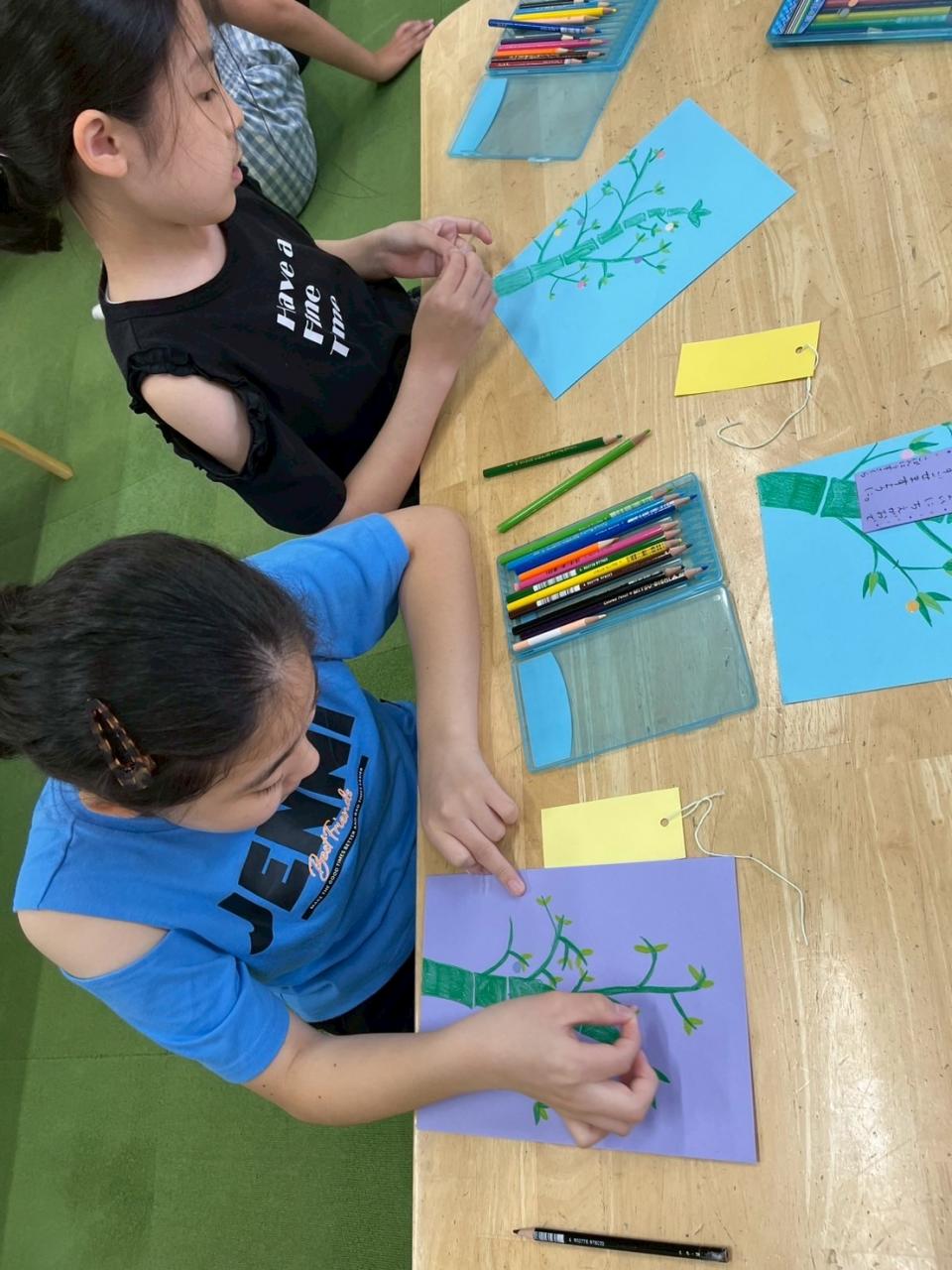 笹を描いて短冊に願いごとを(^人^)