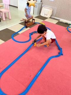 風船あそびやプラレールで楽しみました