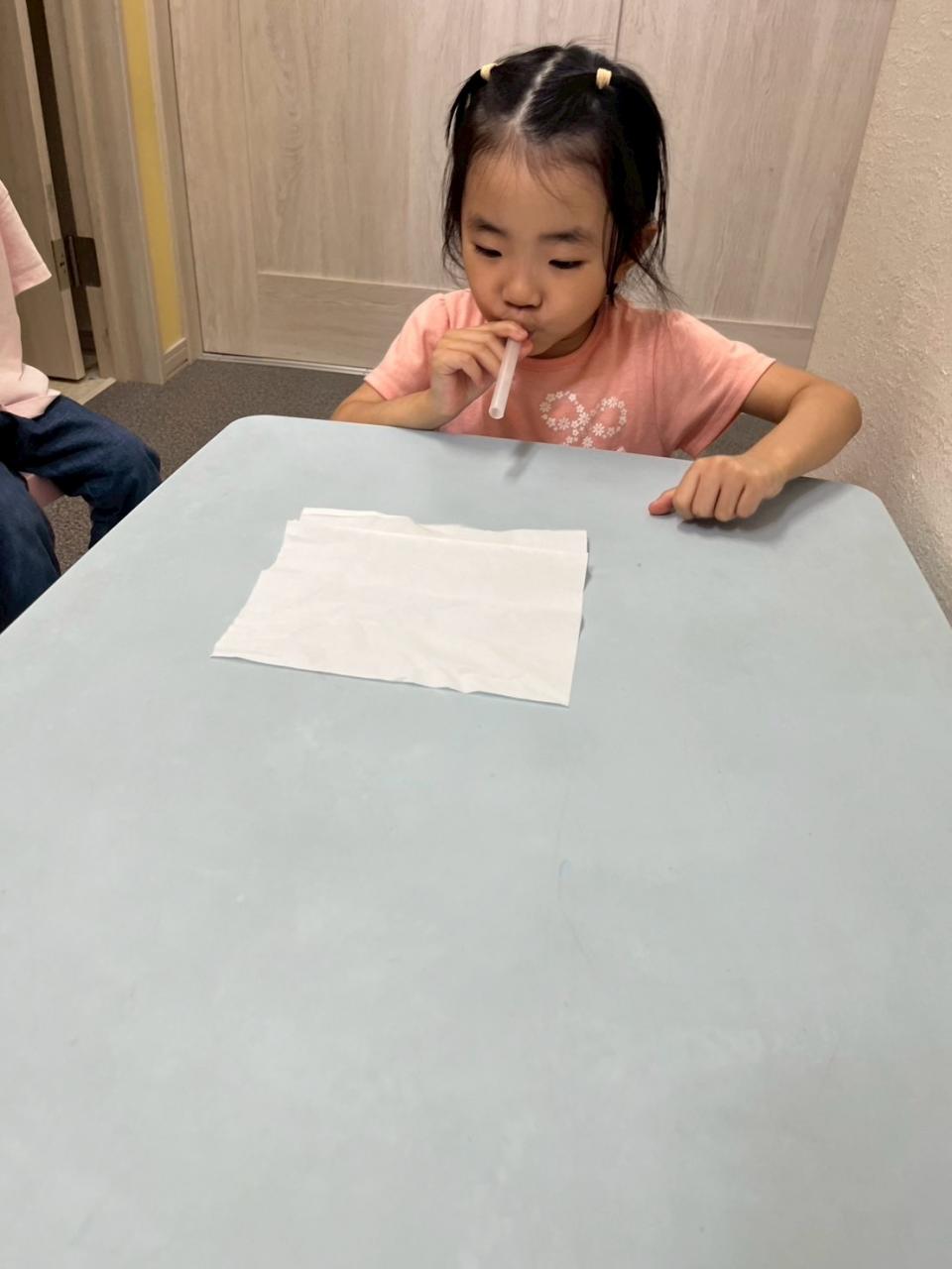 コップに入った水をストローでブクブクしたり