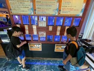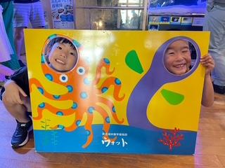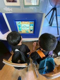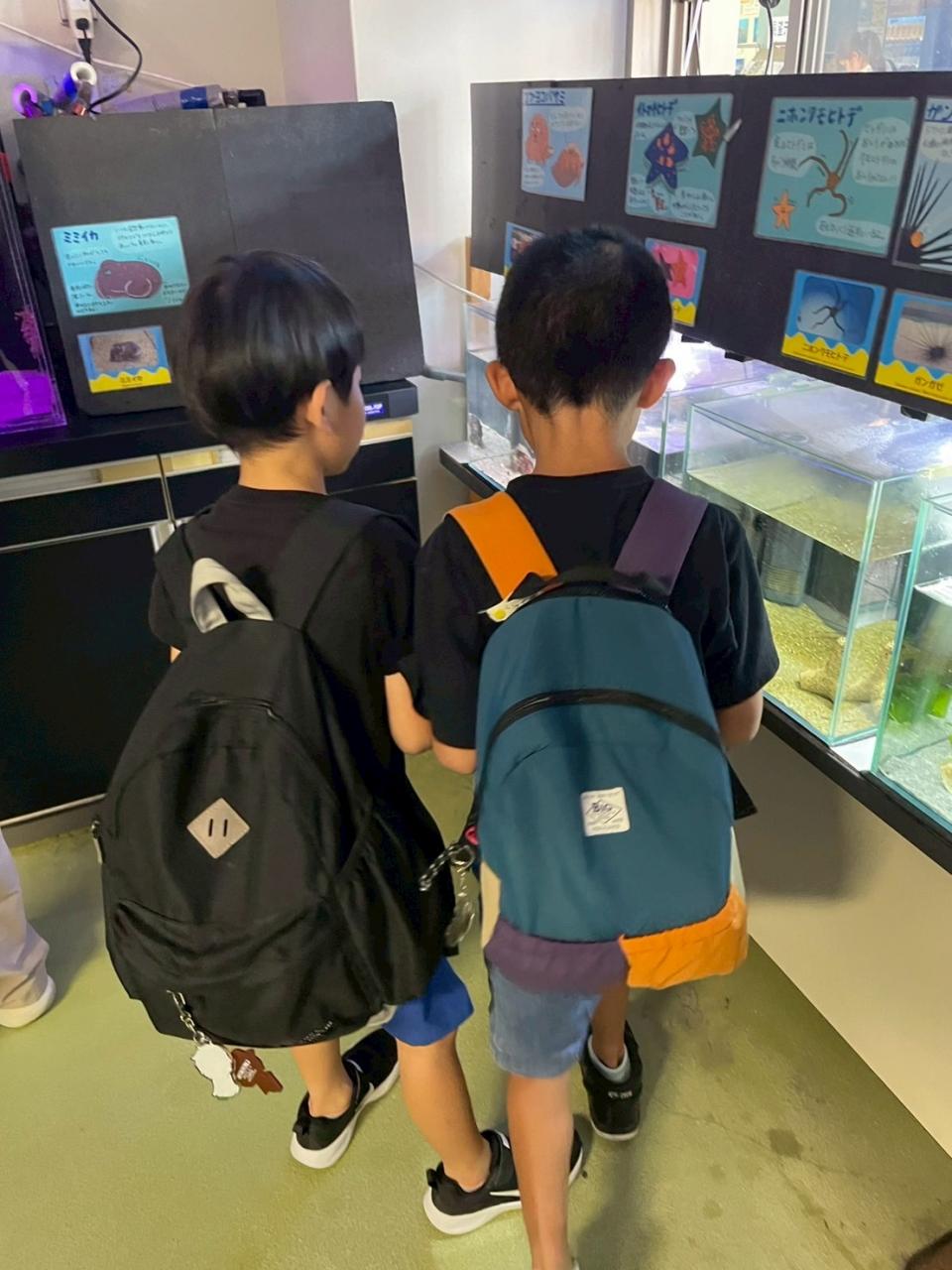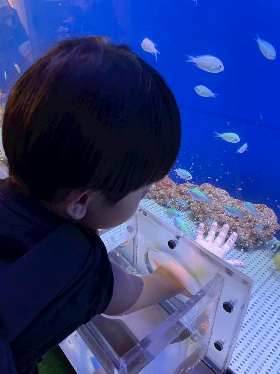 大きな水槽を眺めたり、手を入れて水槽内の魚に触れたり、魚クイズに挑戦したりとペアの友達と一緒に楽しんできました(๑・̑◡・̑๑)