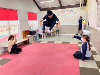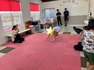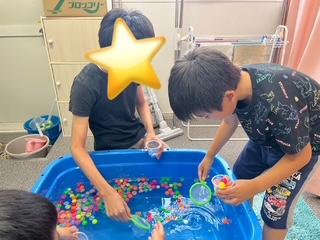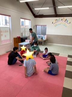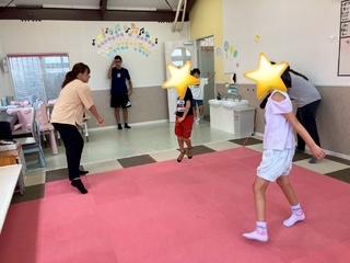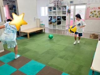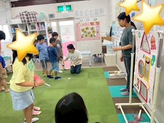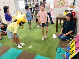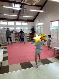 雷注意報の為プログラムを水遊びから集団遊びに変更しています。