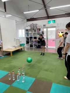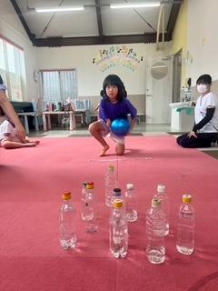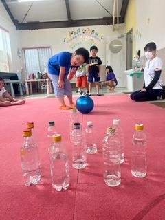 最初はうまくボールを転がせなかったけど、段々と上手になり沢山倒せるようになりました!