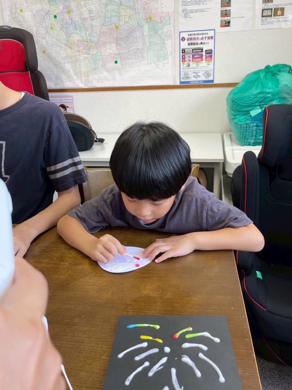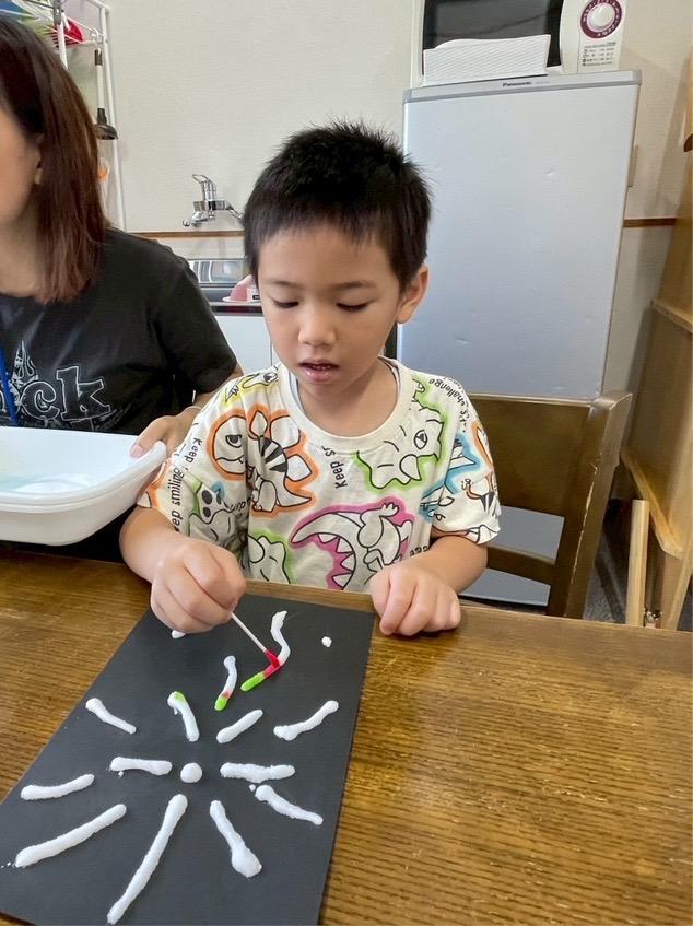 今日は、塩絵の具でかき氷と花火を作りました♪