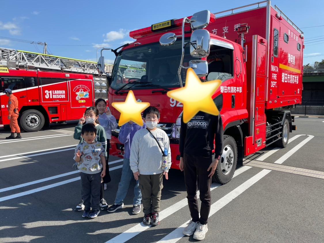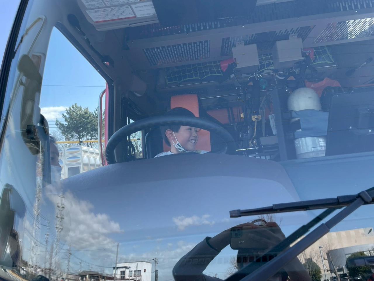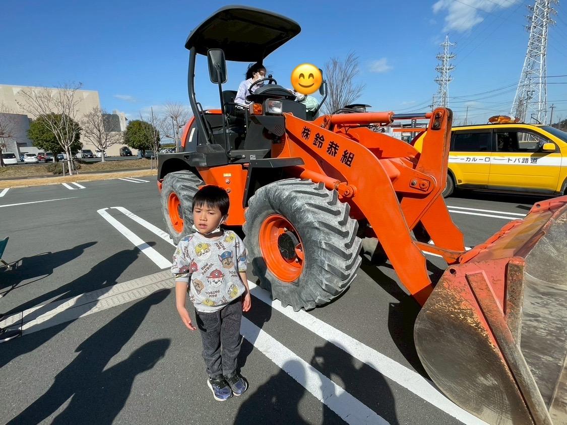 消防車だけでなく、ホイールローダーなど工事現場のはたらく車もいて大興奮な様子でした(✳︎´∨︎`✳︎)