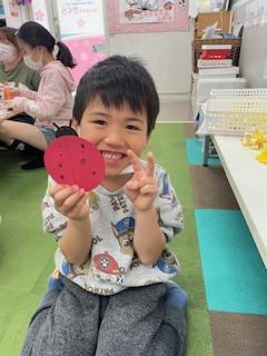 チョウ、てんとう虫、たんぽぽの工作をして、春の壁面飾りができました(๑´ㅂ`๑)